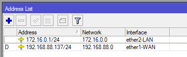 Se crea una dirección IP para la interfaz de red ether2-LAN para proveer de una dirección de red válida.