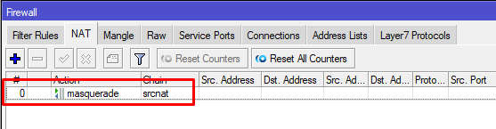Para configurar el NAT y tener acceso a internet a traves de los dos routers conectados a la interfaz LAN del R1, creamo la siguiente teconfiguracion de NAT con masquerade.
