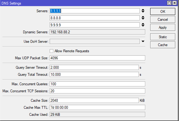 Regla de firewall para internet con sus diferentes DNS de salida a internet.
